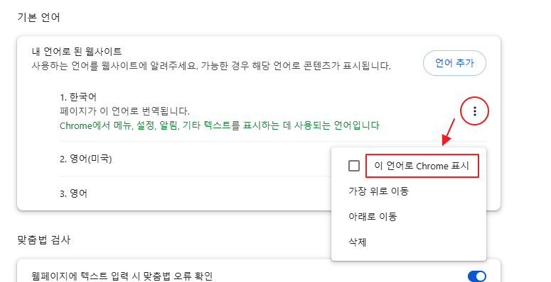 2. 크롬 언어 설정 변경하는 방법 (한글 ↔ 영어)