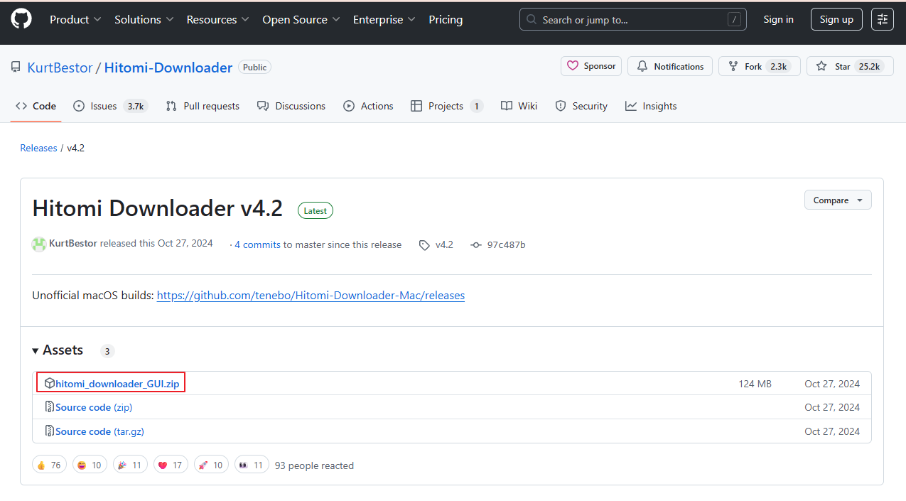 (3) 'hitomi_downloader_GUI.zip' 클릭해 프로그램 다운로드 받기