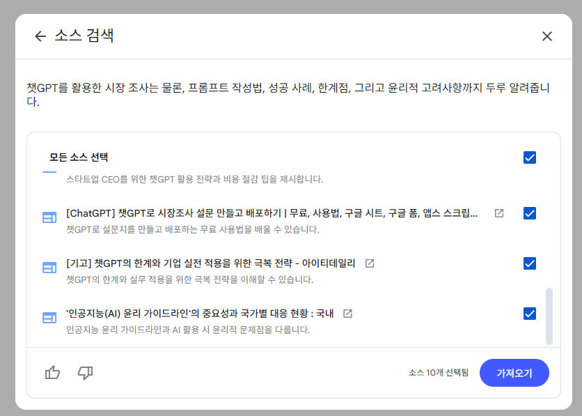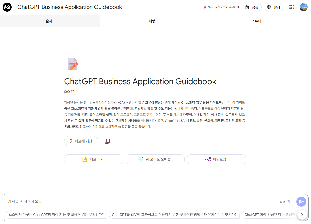 - 유용한 채팅 결과는 ‘메모에 저장’