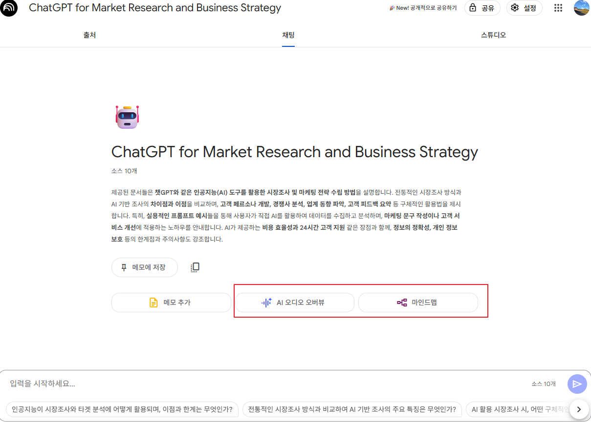 - 마인드맵 및 음성 개요 기능