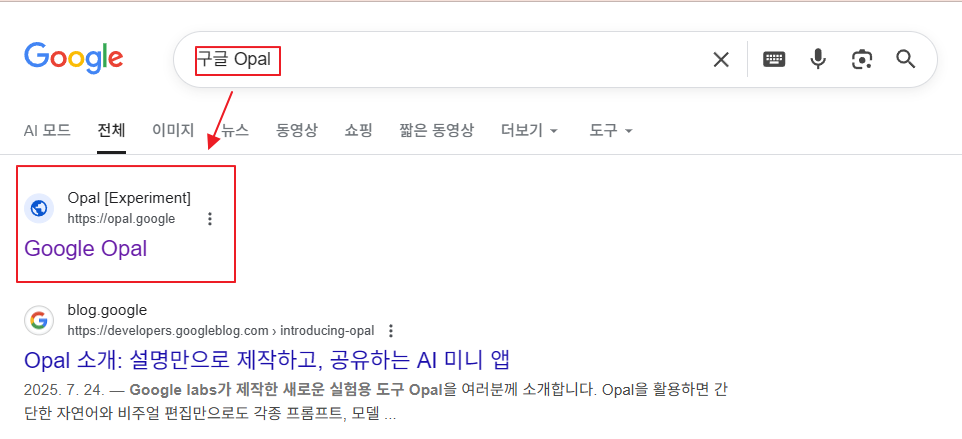 (1) 구글 검색에서 '구글 Opal' 입력하기