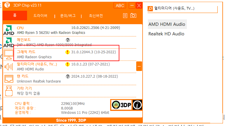 5. 3DP Chip / 3Dp NET 공식 홈페이지 바로가기 및 윈도우11 드라이버 자동설치 기능 끄기