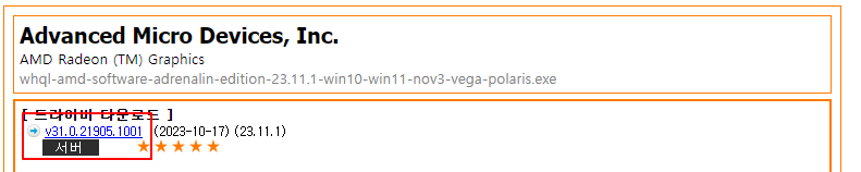 (5) 새창에서 다운로드 가능한 그래픽 드라이버 디바이스 정보가 나옮니다.
