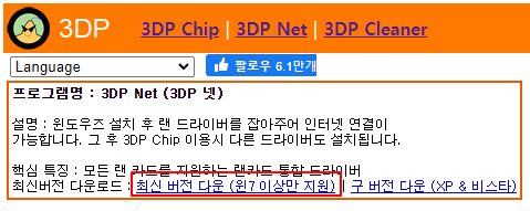 (1) 3DP Net은 처음 윈도우 설치했을 때, 네트워크 드라이버에 문제가 생겼을 때 문제를 해결해주는 소프트웨어입니다.