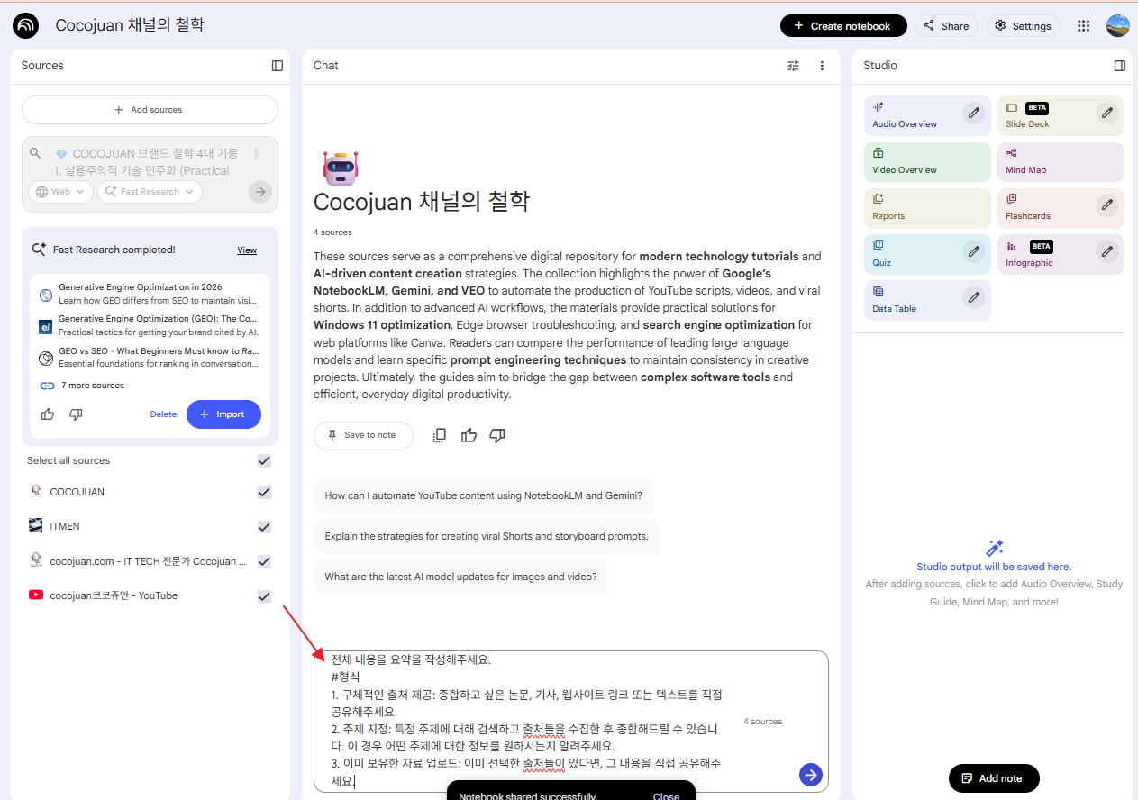 (1) 아래 프롬프트를 노트북LM에 입력합니다.